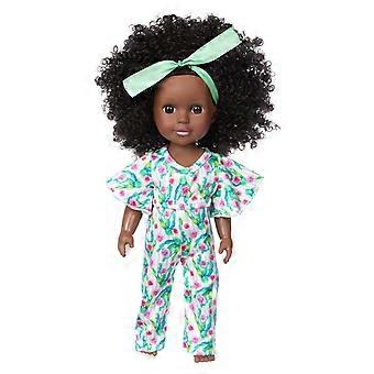 14 Inch Black Girl Doll with Suit, Make Up - Lifelike Silicone Vinyl Girls DIY Dolls, Gifts Simulation Toy