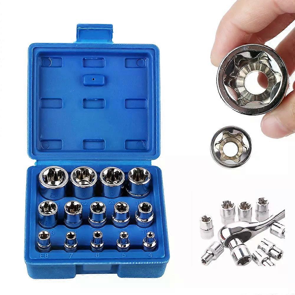 14-Pieces E4-E24 Female E Torx Socket Set with a Case External Torx Socket Set Star Socket Set Wrench Head Auto Repair Tools
