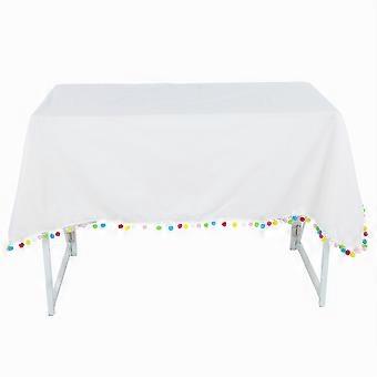 140*140cm Nordic Style Tassel Dustproof Tablecloth Cotton Linen Table Cover White