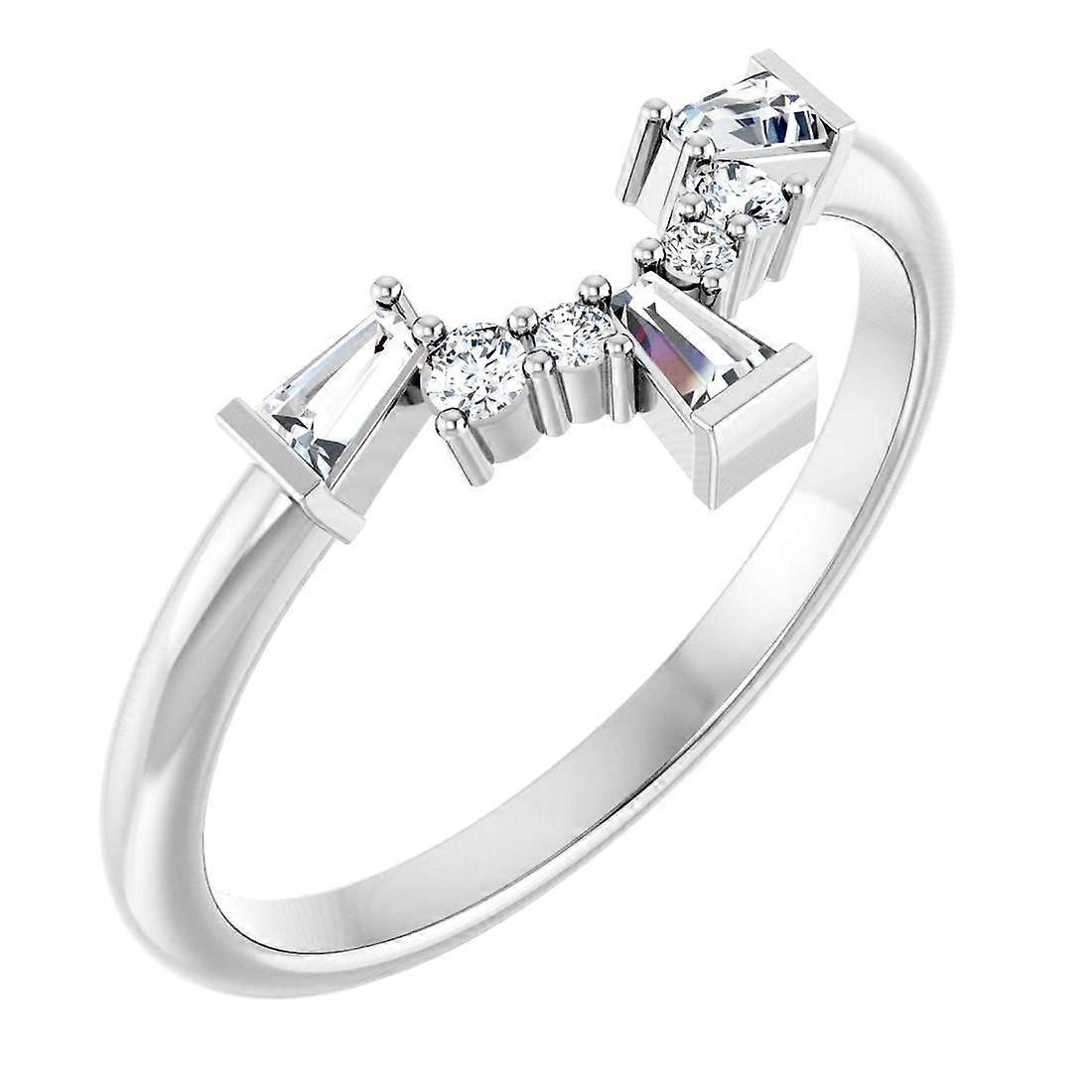 14k White Gold Band Ring Lab Created Diamond Tapered Baguette 3x2x1mm-Lab grown Diamond Polished 0.2 Carat Contour Size