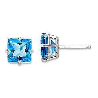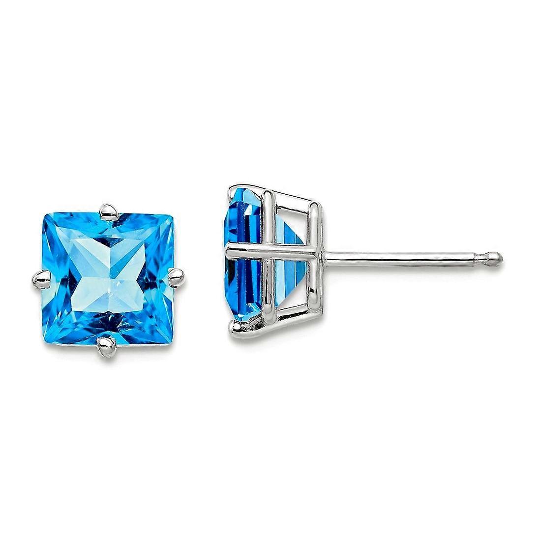 14k Solid Yellow Gold Princess Cut Blue Topaz Earrings Stud Earring for Women