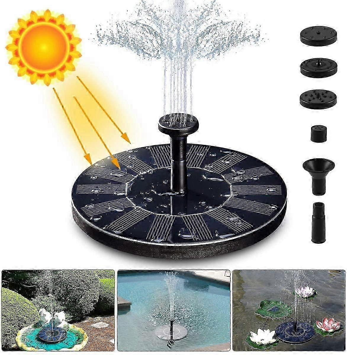 Advanced Solar Fountain PumpIt is completely controlled by solar energy, requires no electricity or battery. No battery in it, a real eco-friendly solar pump ( environmental protection). Most Efficiency1.4W Solar Fountain, Maximum 70cm Height Solar Water Pump with 4 Different Nozzles. The solar water pump can work normally even if some solar panels are blocked by the leaves. Can change the nozzles at any time according to their personal preferences and different scenes. Easy to install and useJust put the pump in the water (there is a foam board), and the sun will do the rest. The brighter the sun, the higher the water can be pumped. Multiple ApplicationsThis eco-friendly fountain is ideal for birdbath, small pond, fish tank, pool, garden, water circulation for oxygen! < p>SuggestionMake sure you put enough water in the birdbath to allow the pump to stay fully submerged. You should clean the pump regularly to avoid dirt clogging the pump.