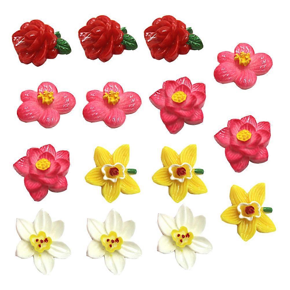 15pcs Mini Resin Flower Accessories for DIY Micro Landscape Decor, Creative Headdress & Moss Art Crafts, Lifelike Indoor Outdoor Decoration