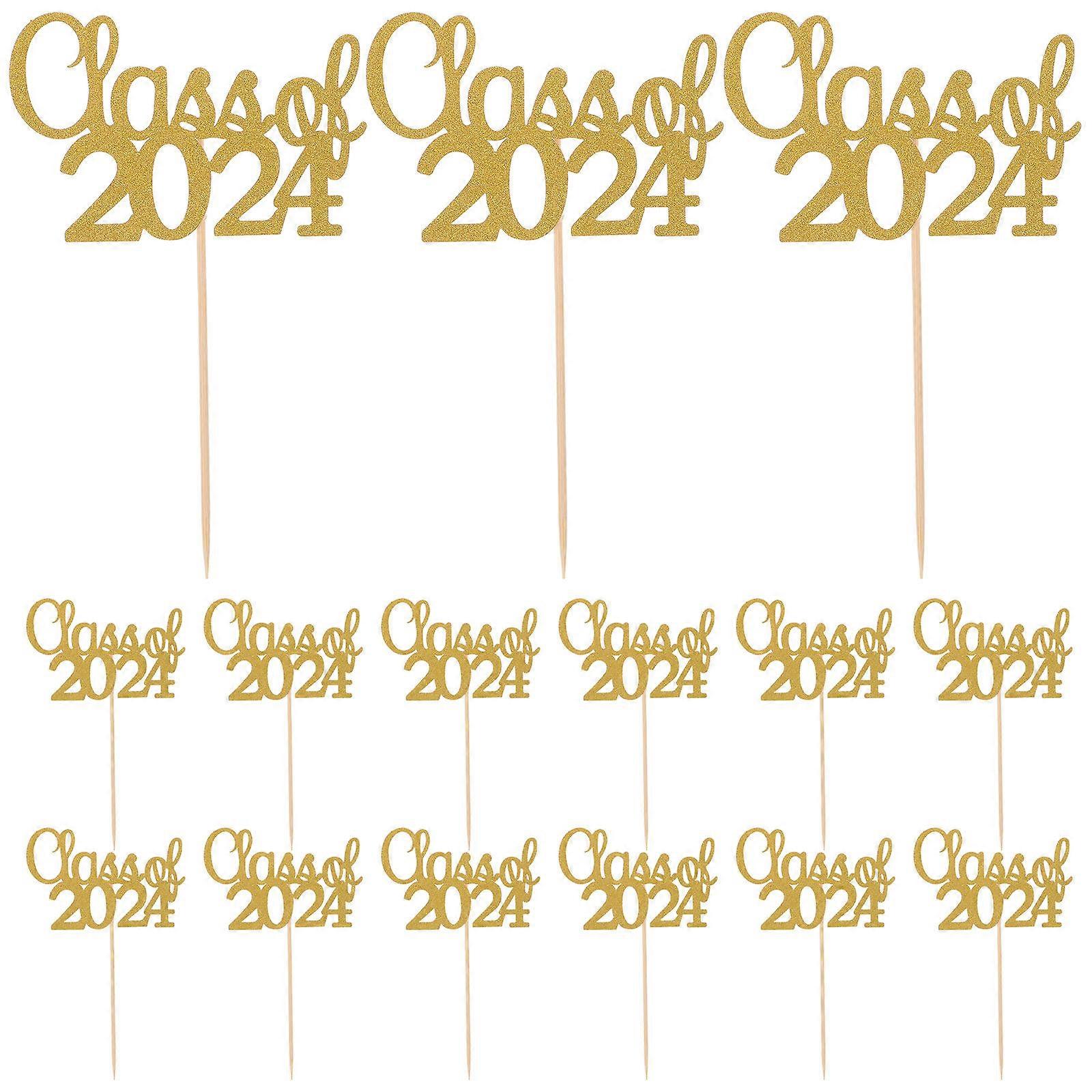 15pcs Golden Graduation Cupcake Toppers for Party Decor Paper Wood Graduation Cake Decorations