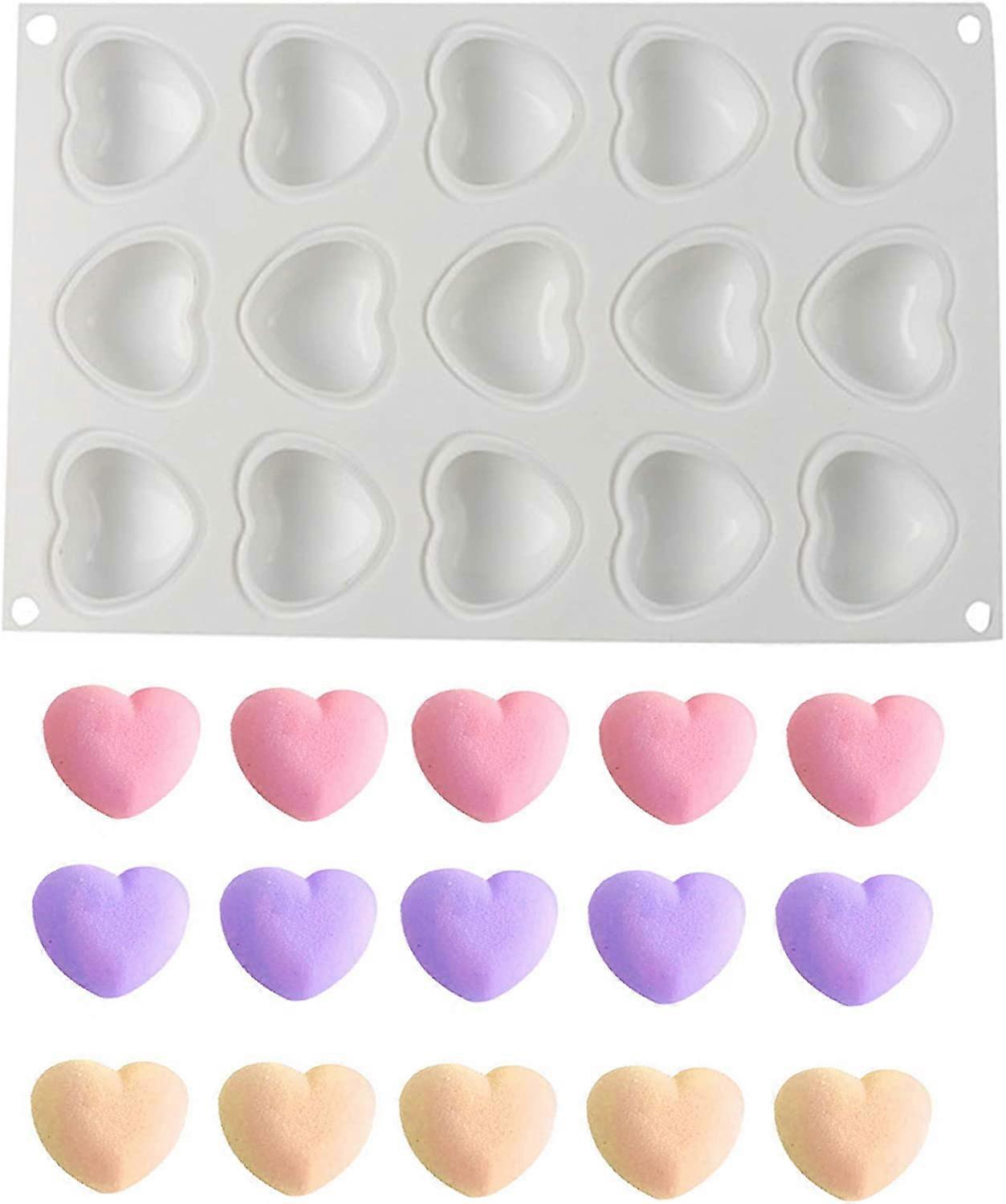 15-Cavity Heart Shaped Silicone Mold. Non-Stick 3D Love Cake Molds. Chocolate