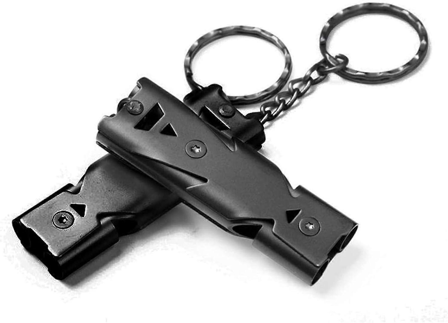 150 Decibels With Less Effort Stainless Steel Lifesaving Whistle Outdoor Emergency Survival Whistle Double Tube Survival Whistle(Black )(2 Pcs)