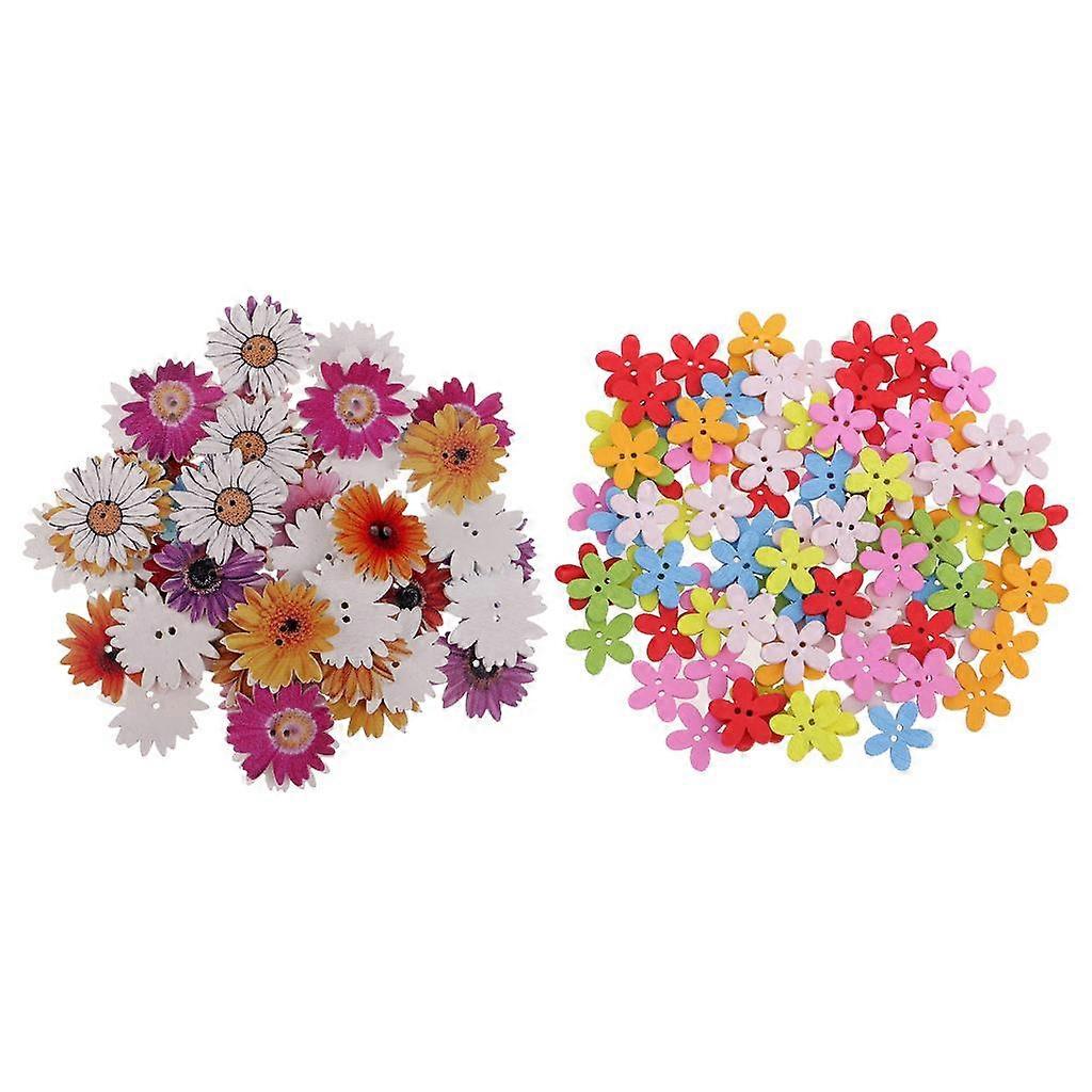 150Pcs Assorted Daisy Flower 2 Holes Wooden Buttons Sewing Craft 15mm