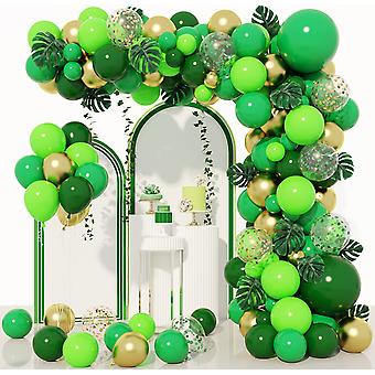 159pcs Jungle Balloon Garland Arch Kit, Gold Lime Green Balloons Decoration With Artificial Turtle Leafs For Wild One Birthday Party, Safari Tropical