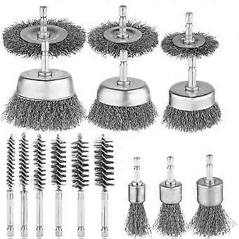 15Pcs Carbon Steel Wire Wheel Brush,Cup Brush,Wheel Brush,Pen Brush, Bore Brush Set with 1/4-Inch Shank for Rust Removal