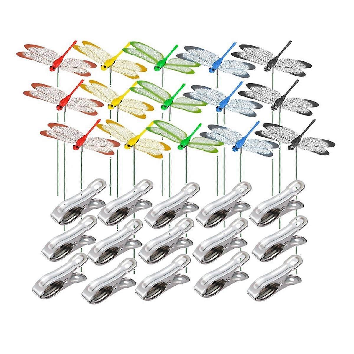 15PCS Decorative Dragonfly Clips Decor for Garden, 9.8inch Long,Multicolor Versatile Clip-on Plant Decoration