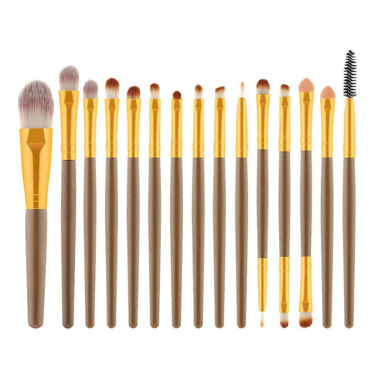 15pcs Makeup Brushes Kit Wooden Handle Pink White Nylon Bristles Cosmetics Powder Blush Brush (TM-185) (Brown Handle)