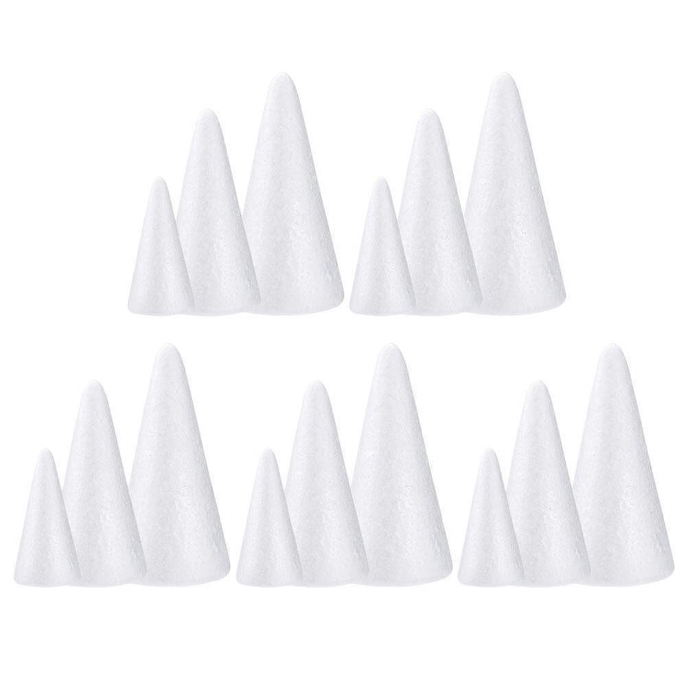 15Pcs Christmas Cones Toys Drawing Foams Cones Decorative White Cones Kindergarten White Cones