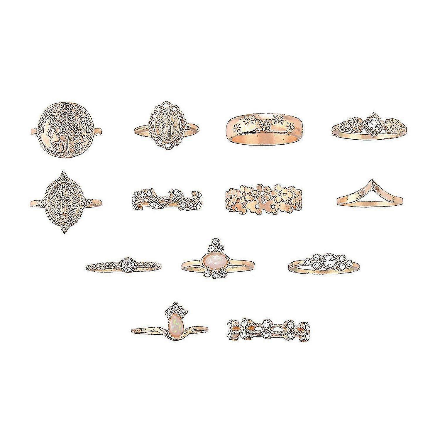 15pcs Vintage Women Mid Ring Set Flower Crown Hollow Out Joint Knuckle Nail Ring