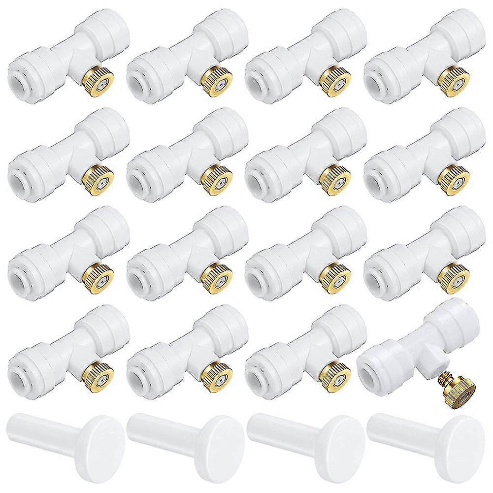 16 Pieces Brass Misting Nozzles Kit Atomizing Nozzle Kit 0.4 mm Orifice 2 Points 1/4 Inch Lock Mist