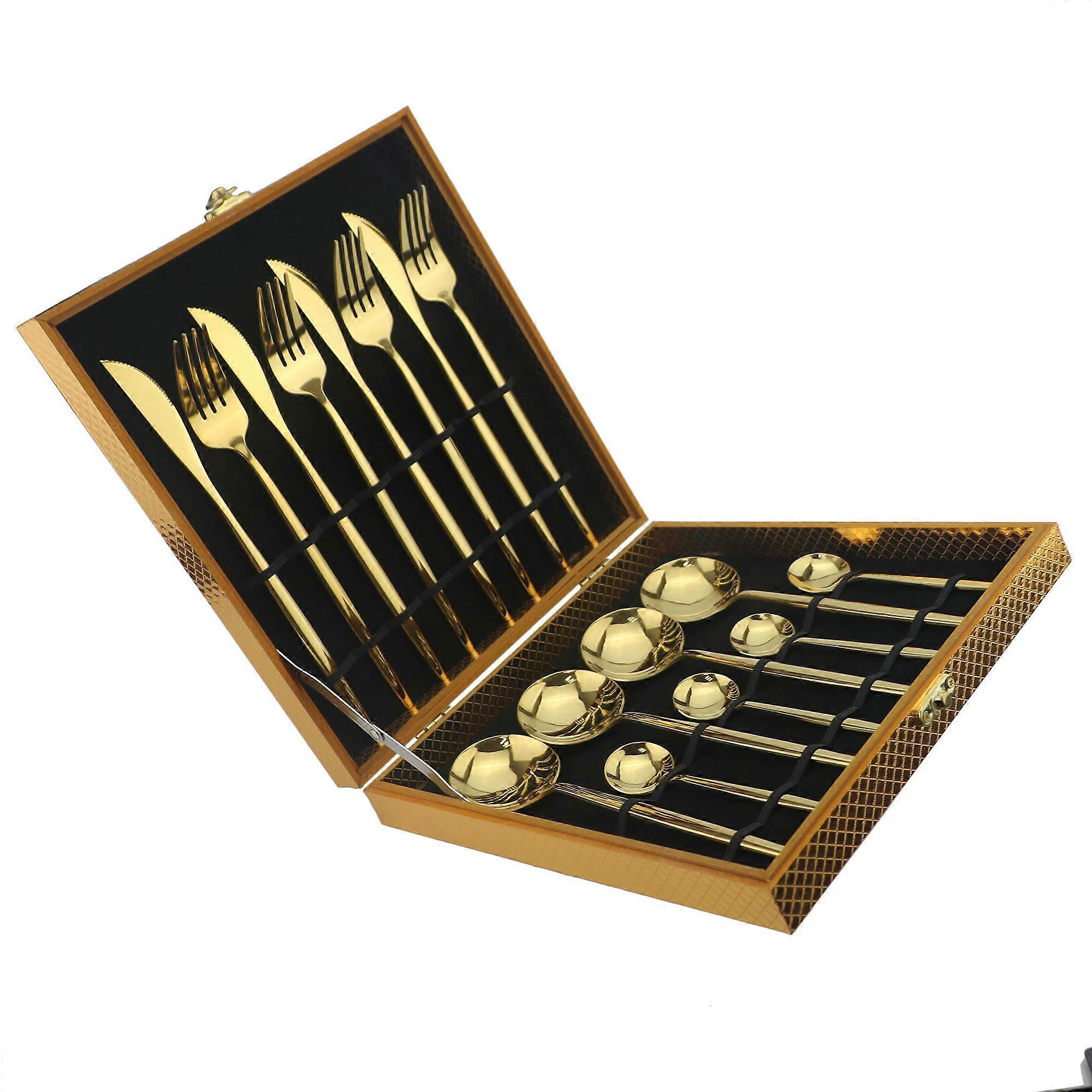 16pcs/Set Luxury Shiny Rose Gold Dinnerware Set Fork Knife Spoon Gold Cutlery Set 304 Stainless Steel Flatware Set With Gift Box