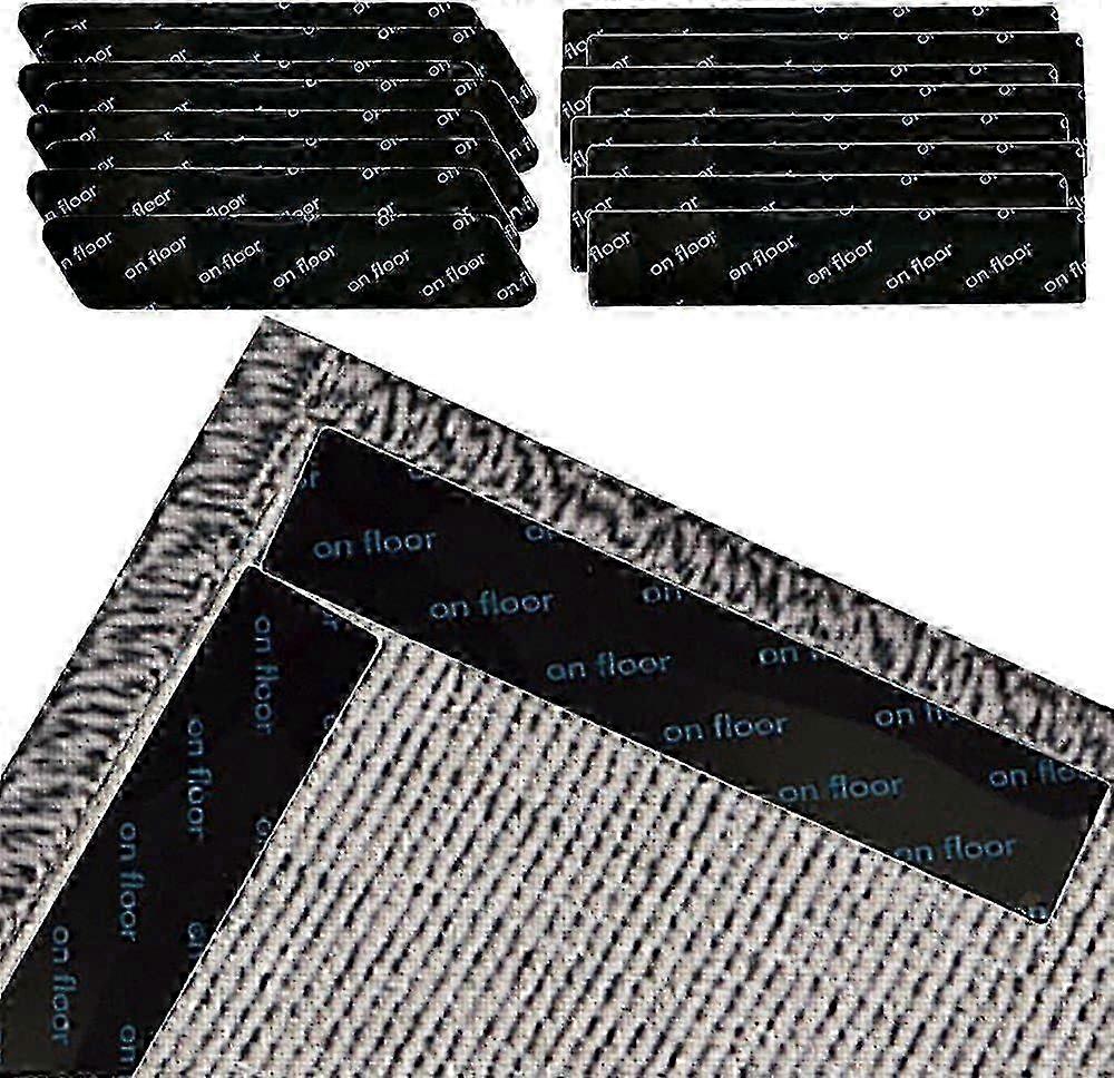 No Curling on Corner or Side Still trouble about the rug curling? The grippers for rugs will hold down the corners or edges of your rugs to keep rugs in place and prevent curling and sliding. Seamless look, Strong Adhesive Rug Corner Grippers The rug grippers strong adhesive backing sticks the underside of your rug or mat on the floor to help prevent rugs from curling. 1/8 inch in thickness make non slip rug pad stay out of sight for a seamless look. No Residue and Damage The anti slip rug tapes coated with premium glue, without the residue of the paste when peel off from floor. You don't need to worry about the residue on your floor, please take it easy e it on your hardwood, tile, cement floor. Removeable and Reusable The rug area grippers is reusable by simply wiping clean with water. After airing it will recover stickiness, then can be reuse again. Note Don't peel off the rug stoppers from rug side once it was fixed and should keep the "on floor" side on the floor. Widely Applicable This package includes 16 pcs rug tapes (2 shapes, 8pcs each shape). The rug anti slip grippers can be free cut into the size or the shape you need, suitable for different shapes of carpets and usage. This anti slip grips for rug suitable for all types of floor ( tiles, hardwood, laminate, marble, concrete, etc.). Non skid rug pad stop your rug from curling, keeps your rug flat and in place.