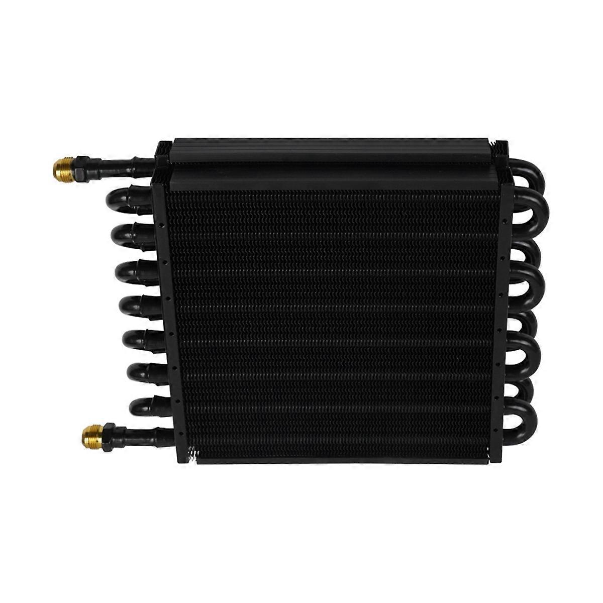[APPLICATION] Compatible with -8AN(1/2Inch) transmission cooler lines. Our 16 pass tube fin cooler is widely used in vehicles or air compressors, Please the tube line size and enough space for installation before purchasing [FUNCTION] Our 16 pass tube fin cooler helps prevent transmission fluid leaks and overheating, cut down on heat-related failures to protect the transmission from potential damage and extend life of transmission [INCREASE EFFICIENCY] Maintains optimal transmission fluid temperature, reduces wear on transmission components, improves fuel efficiency, and enhances the overall reliability of the vehicle by utilizing advanced cooling technology [PREMIUM QUALITY] aluminum construction for long-lasting performance, coated for high resistance and increased protection against the elements Color: Black Material: aluminum alloy Package Contents: 1 x 16 Pass 1/2Inch Transmission Cooler Only the above package content, other products are not included. Note: Light reflection and different displays may cause the color of the item in the picture a little different from the real thing. The measurement allowed error is +/- 1-3cm.
