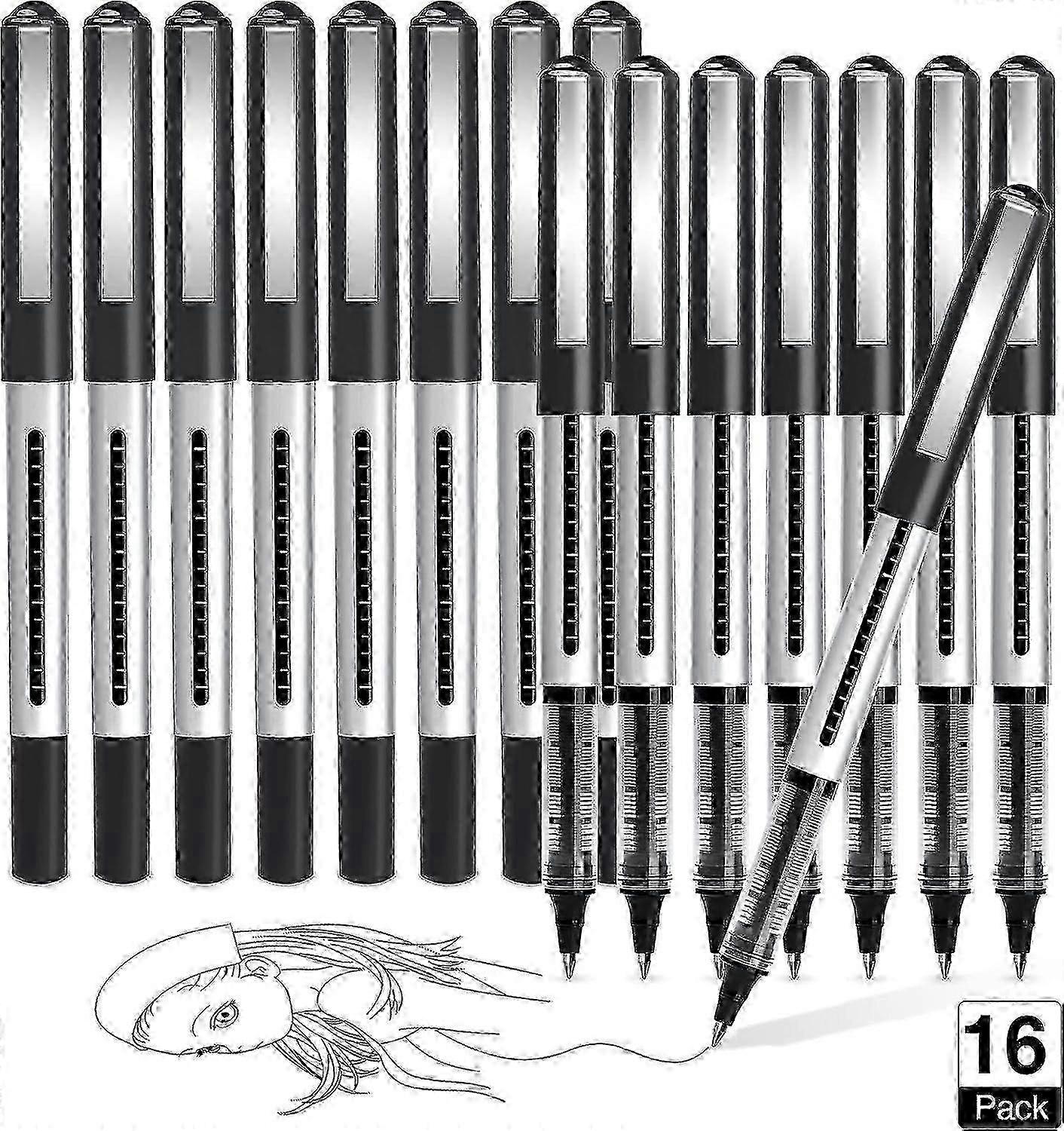 16-Pack Black Gel Pens - 0.5mm Rollerball Pens with Smooth Liquid Ink for Writing, Drawing & Note-Taking