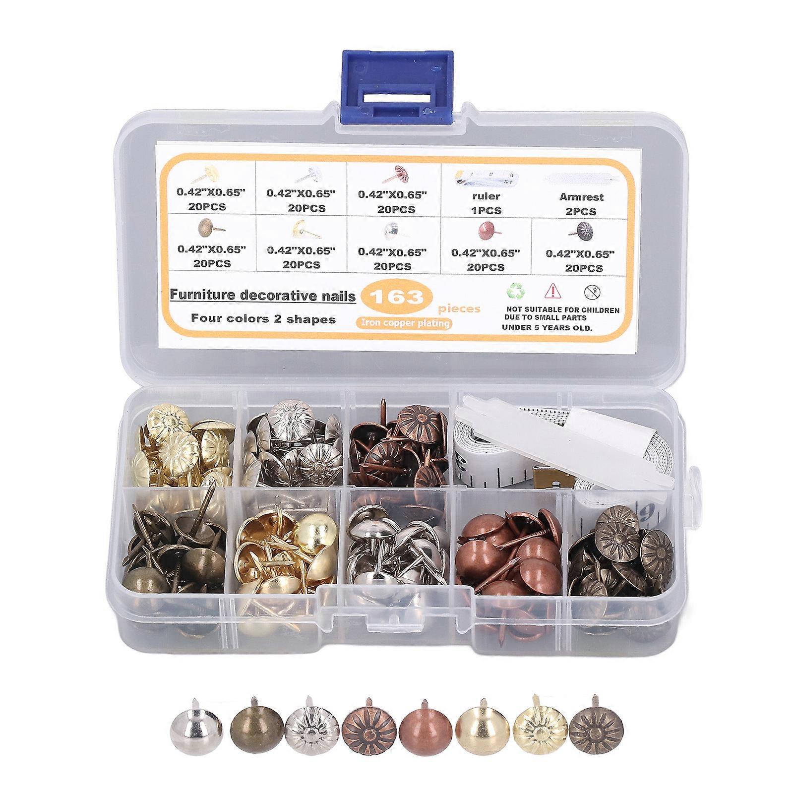 163Pcs Upholstery Tack Carbon Steel Rustless Corrosion Resistant Antique Decorative Nail for Furniture Painting