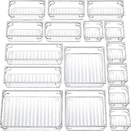 16PCS Clear Plastic Drawer Organizers Set, 4-Size Versatile Bathroom and Vanity Drawer Organizer Trays, Storage Bins for Makeup, Bedroom, Kitchen Gadg
