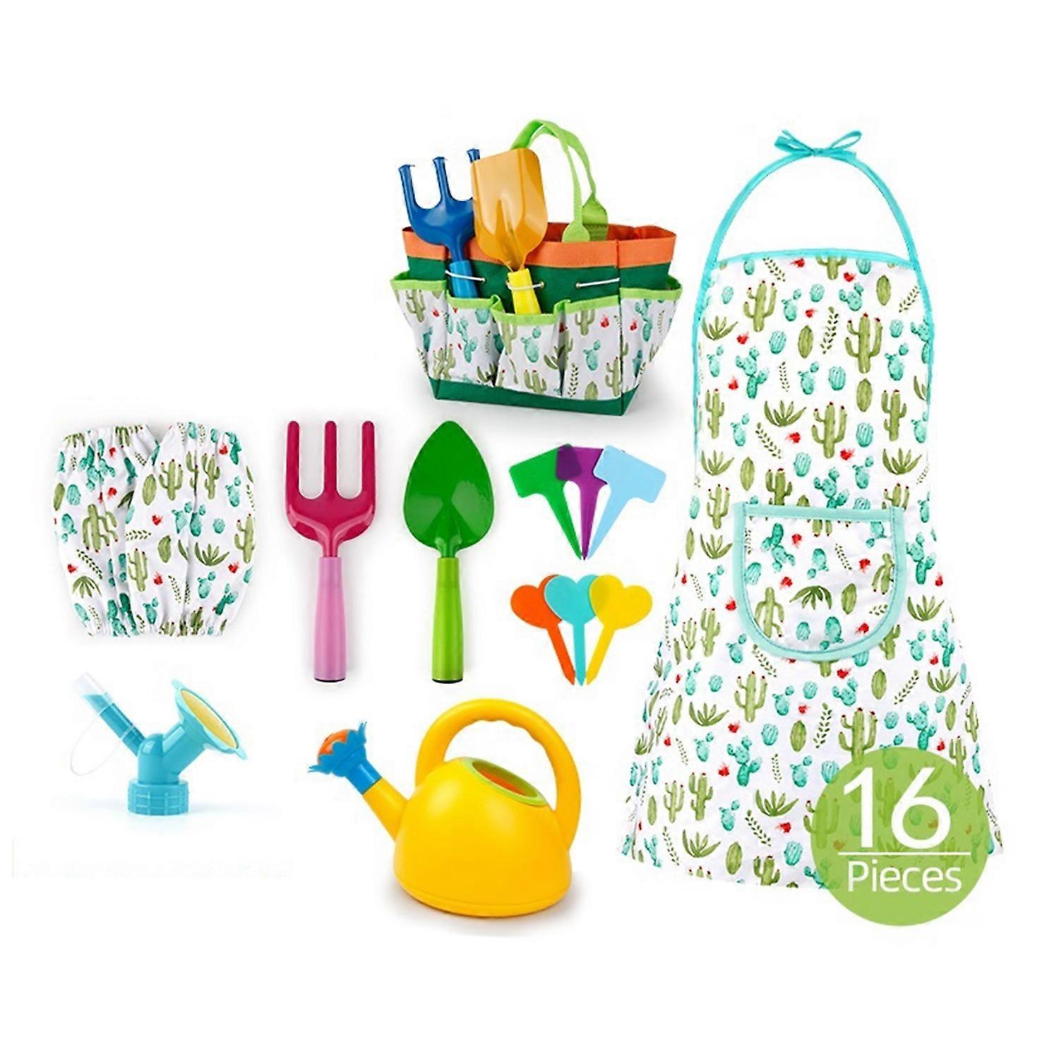 16Pcs/ Set Gardening Tool Set Practical Ability Grip Easily Kids Toys Watering Cans Shovels Aprons