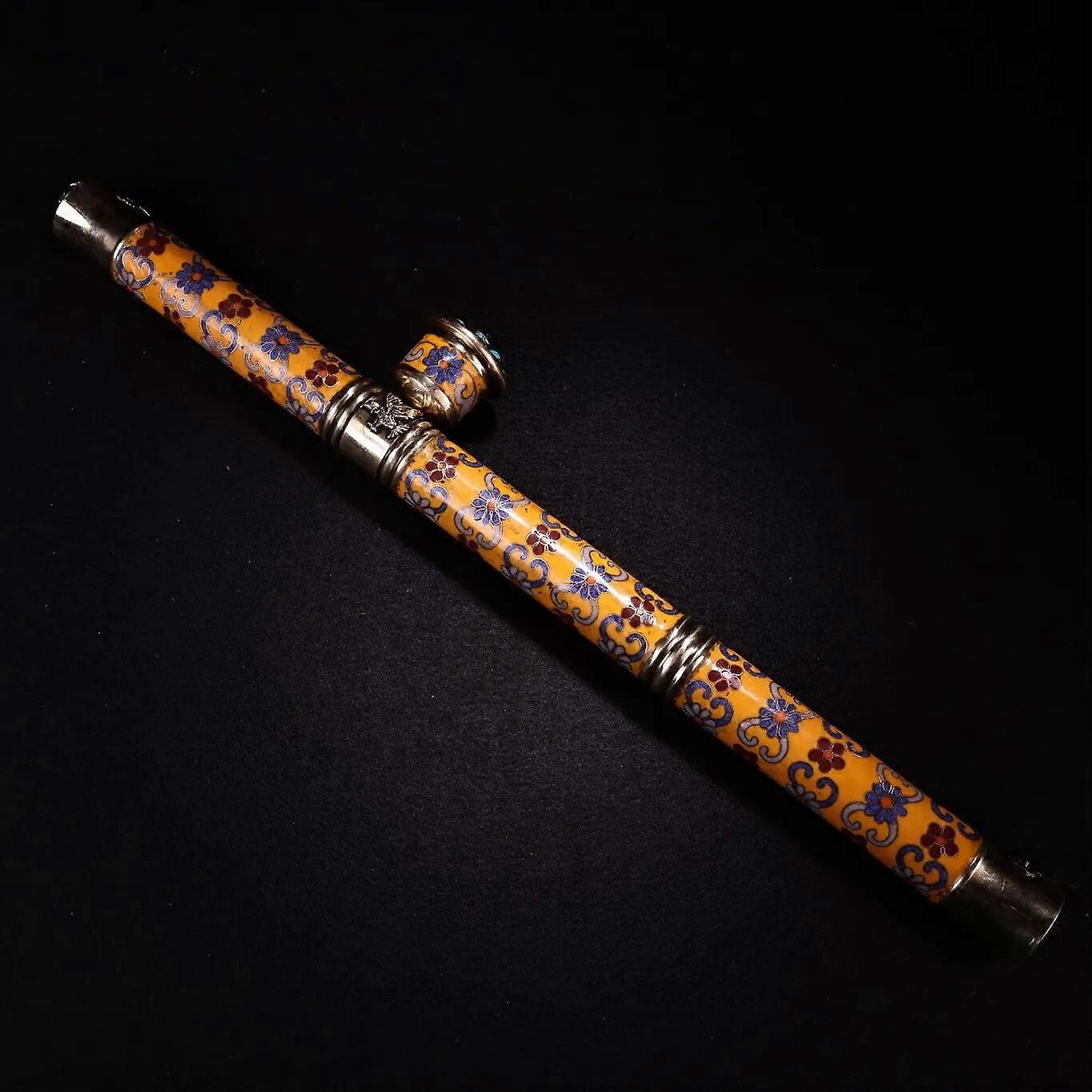 17Tibetan Temple Collection Bronze Cloisonne Enamel mosaic gem eye bag tube smoking tool office ornament Town house Exorcism