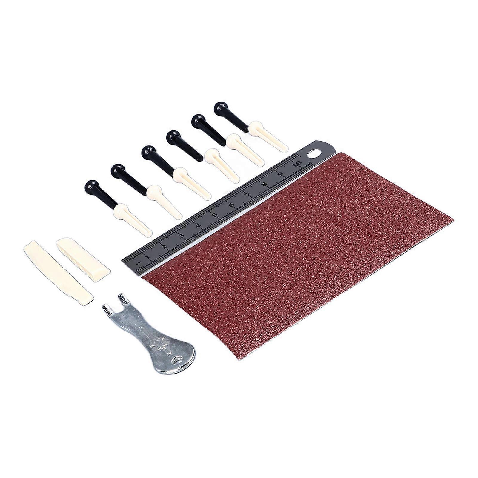 17Pcs Acoustic Guitar Bridge Pin Set Metal Bone Professional Guitar String Peg Kit with Nut Saddle Ruler