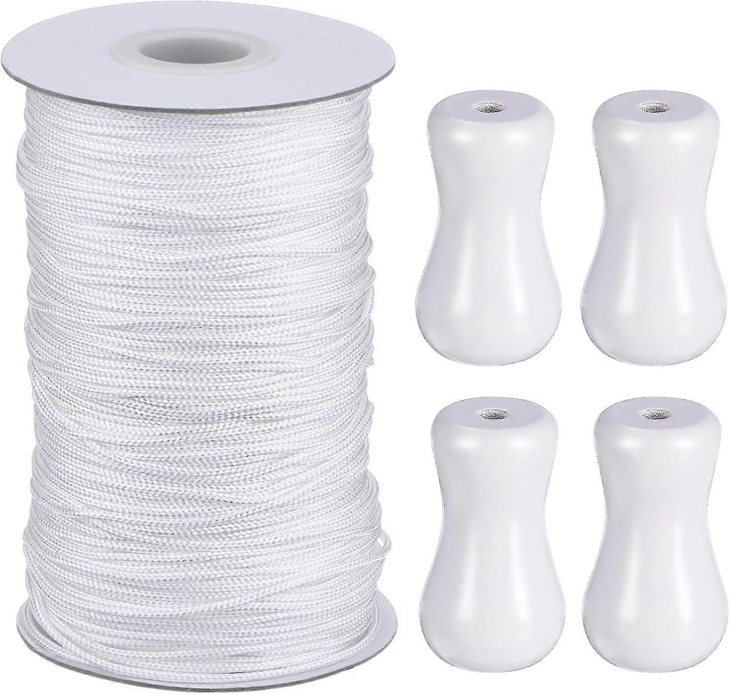 1.8 Mm White Braided Lift Shade Cord 55 Yards/roll With 4 Pieces White Wood Pendant For Aluminum Blind Shade, Gardening Plant And Crafts (white)5pcs