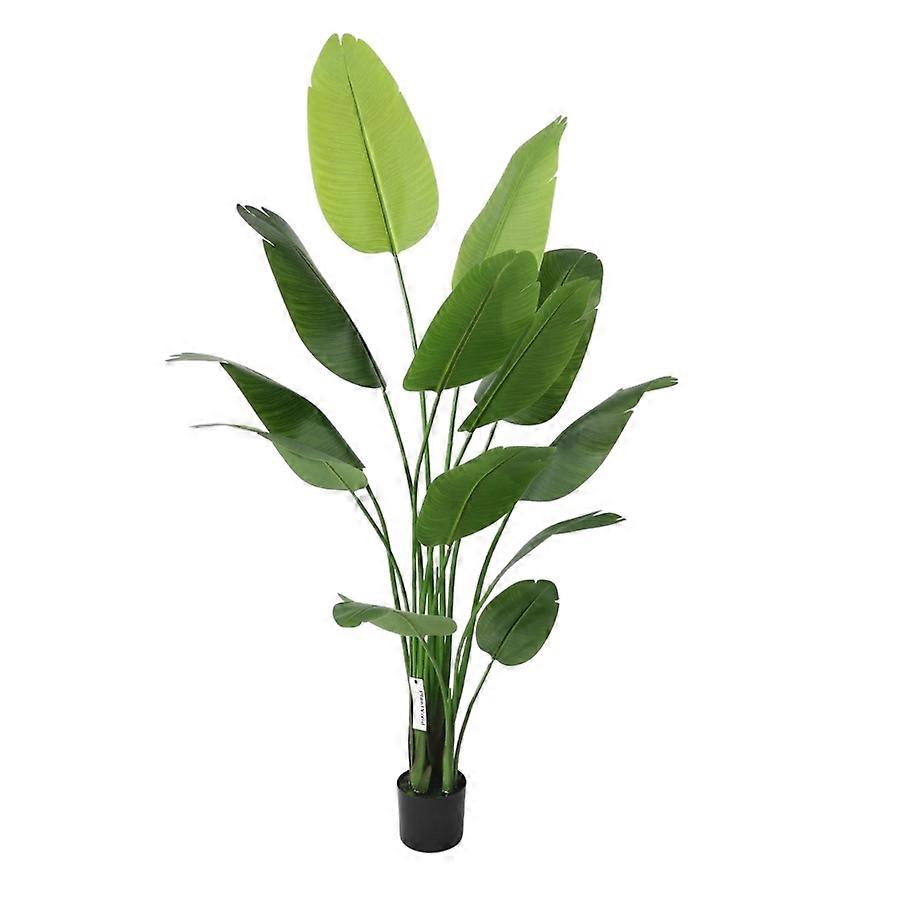 Bring lifelike tropical elegance to any space with our UV-resistant artificial travelers palm. Handcrafted with organic leaf variations and fade-proof materials, this detachable design offers effortless assembly and sophisticated styling for indoor/outdoor settings. Dimensions & Care Height Range: 180cm (measured from Pot base to tallest leaf tip ±2cm ) Note: Gently fluff leaves after unpacking; detachable design allows easy assembly/disassembly for storage or transport—no tools required. Simply align and connect the main rod by matching the identical numbered stickers on its top and bottom ends to complete installation. Peel off the stickers after assembly. · Sunlight: For outdoor use, place in shaded areas to preserve leaf color; indoor display thrives in bright, indirect light · Cleaning: Wipe dust from leaves with a soft, dry cloth or use a low-pressure air duster · Storage: Disassemble into parts and store flat in a dry, dust-free container—avoid bending leaves sharply to maintain shape Why Choose Us? We blend nature-inspired artistry with functional design. Every travelers palm is designed to deliver: · Easy Assembly Detachability: Split into base and leaf sections for hassle-free setup—ideal for the home, events, or commercial spaces · All-Weather Durability: UV-resistant materials prevent fading indoors or in covered outdoor areas (e.g., patios, poolside) · Botanical Realism: Oversized, lifelike leaves with natural texture and curved edges for authentic tropical foliage appeal · Low-Maintenance Luxury: Lightweight construction—no watering, pruning, or wilting; simply dust to refresh Perfect For: · Home & Patio Decor: Add tropical drama to living rooms, conservatories, or outdoor lounges with lush, floor-to-ceiling greenery · Commercial Spaces: Elevate hotel atriums, tropical-themed restaurants, or resort lobbies with statement-making plants · Event Styling: Create exotic wedding backdrops, luau party decor, or jungle-themed photo booth settings · DIY Projects: Customize height or arrangement by detaching/reattaching leaf sections for unique displays · Renter-Friendly Design: Easy disassembly for moving—no permanent installation or heavy lifting required · Tropical Themed Interiors: Complement bohemian, coastal, or safari-inspired decor with authentic travelers palm aesthetics Unique Advantages · Portable Grandeur: 1.8M height with detachable parts allows easy transport for events or seasonal decor changes · Realistic Foliage Details: Veined leaves with natural color gradients mimic fresh-picked travelers palm fronds · Photography-Ready Impact: Dramatic leaf shapes create striking visuals in photos for weddings, social media, or commercial campaigns · Space-Saving Storage: Disassembled parts occupy minimal space—perfect for the home or event planners with limited storage · Cost-Effective Tropical Style: Long-lasting durability eliminates the need for live plant upkeep—ideal for budget-conscious decorators What's inside the package: 1x Artificial Plant (with Black Base Pot)
