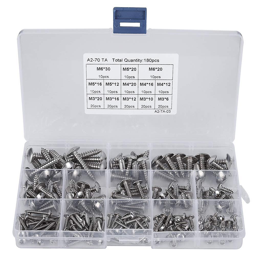 180pcs Self Tapping Screws Assortment Set, Include M3 M4 M5 M6 Stainless Steel Flat Head For Multiple Purpose Drilling Set, Sheet Metal Screw Kit Cros