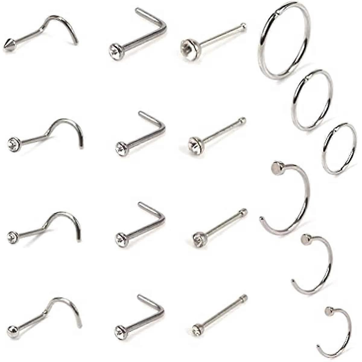 18pcs Nose Studs Rings Hoop Set, Surgical Steel Nose Studs Nose Screw Nose Hoop Rings Cz Nose Piercing Jewelry For Women Men