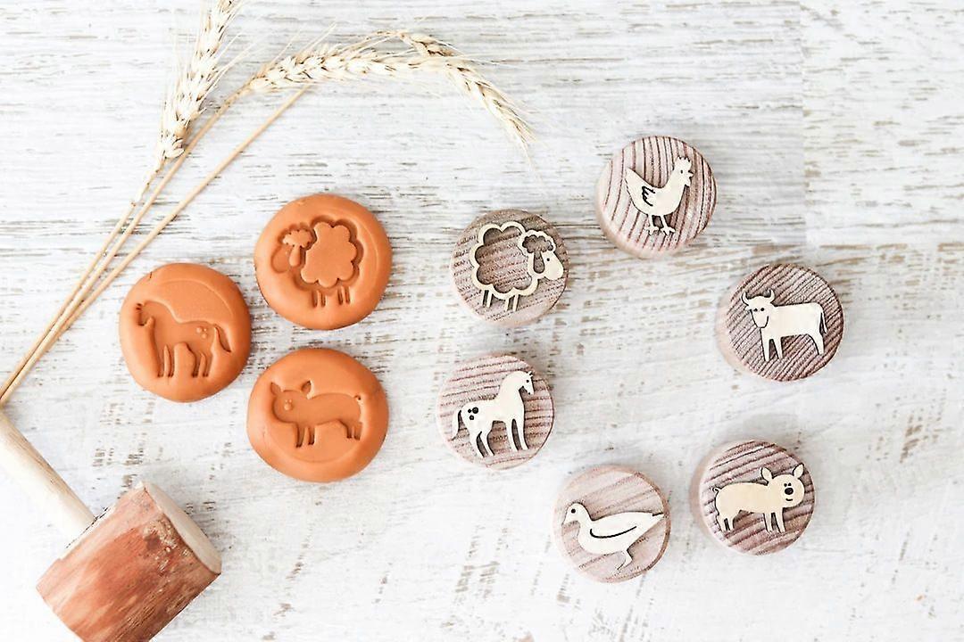 19pcs Kids Stamps: Children Wood Stamp Clay Toy Set - Cute Animal Stampers For Toddler - Early Development Learning Bloc For Party School Art Projects