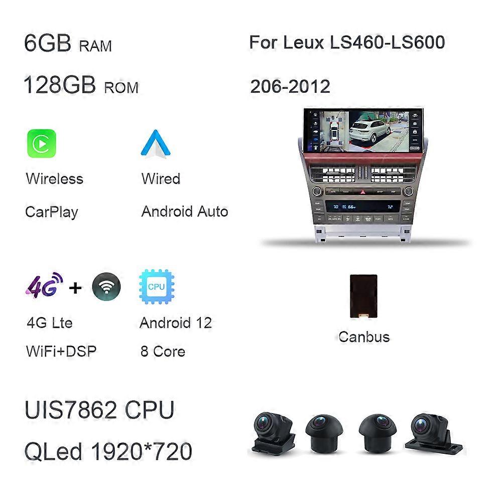 1920*720 IPS 12.3"360 Carplay 8G+128G Android 12 Car DVD Player multimedia GPS Stereo Radio For Lexus LS460-LS600 2006-2012