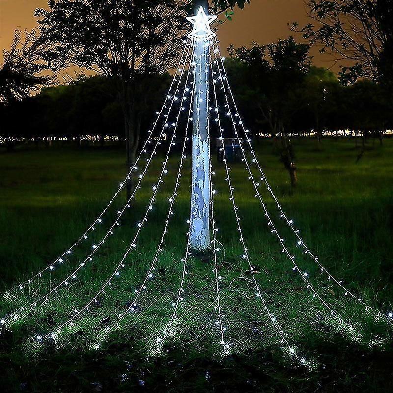 19.7 Christmas Decoration Outdoor Star String Lights, 320 Led Waterfall Tree Lights 8 Modes Plug In Waterproof Christmas Light For Tree Yard Exterior