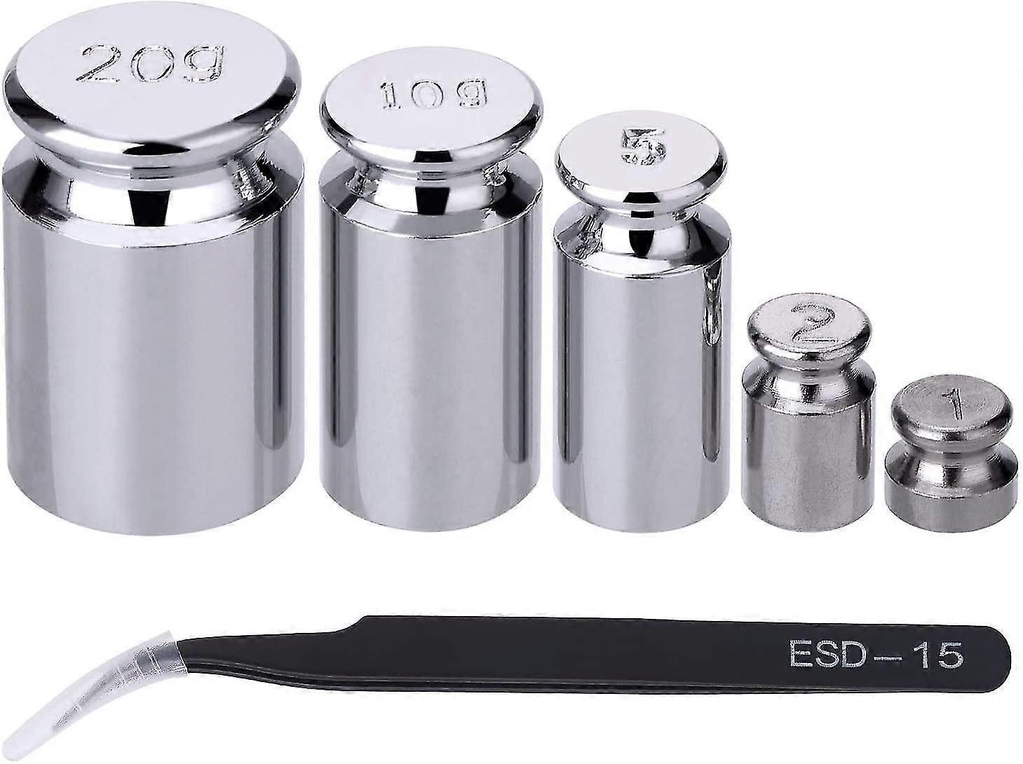 1g 2g 5g 10g 20g Gram Set For Digital Scale Balance And 1 Piece Calibration Weight Tweezer, Silver