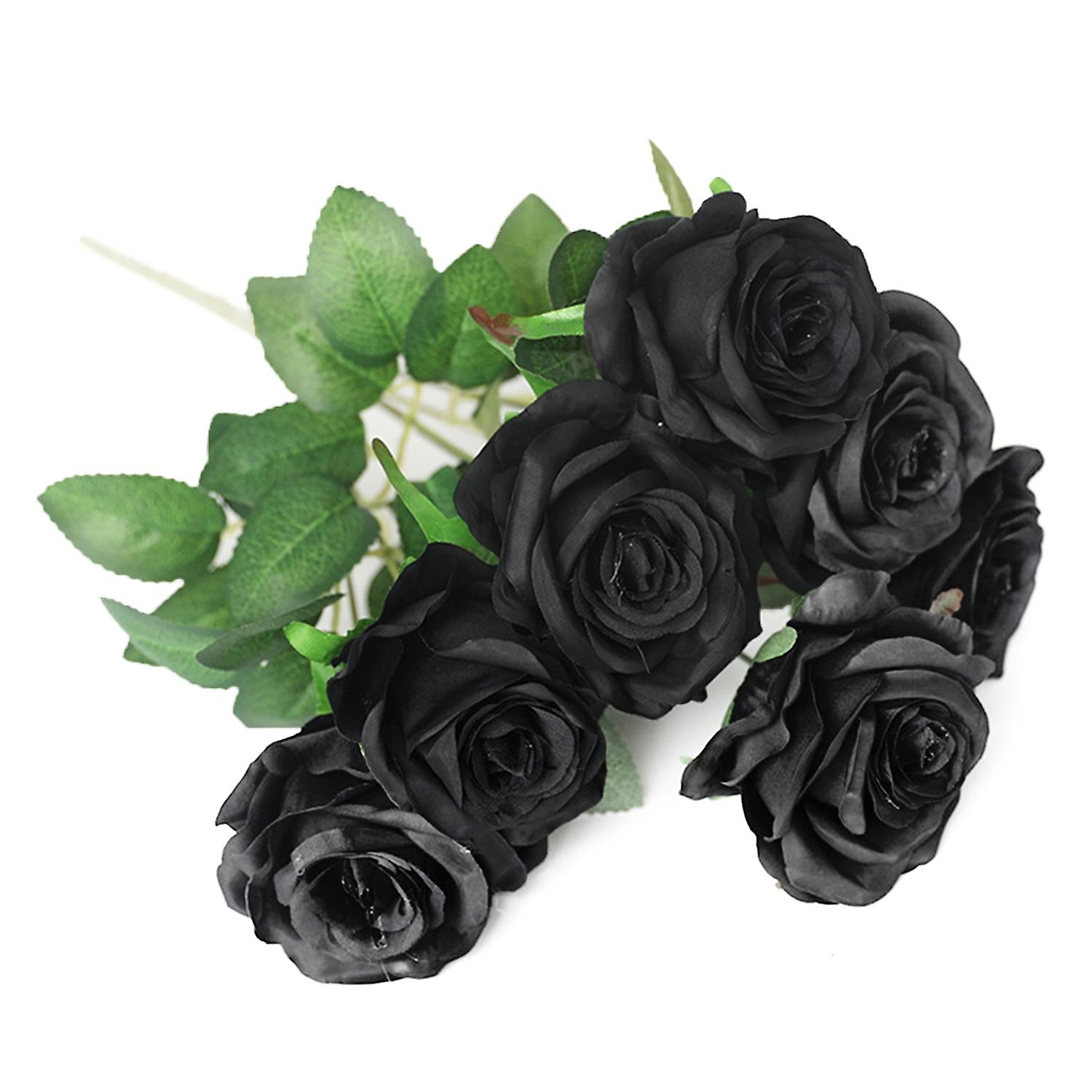 1Pc Ornamental Artificial Rose Realistic Faux Silk Flower Reusable Fake Black Floral Decor