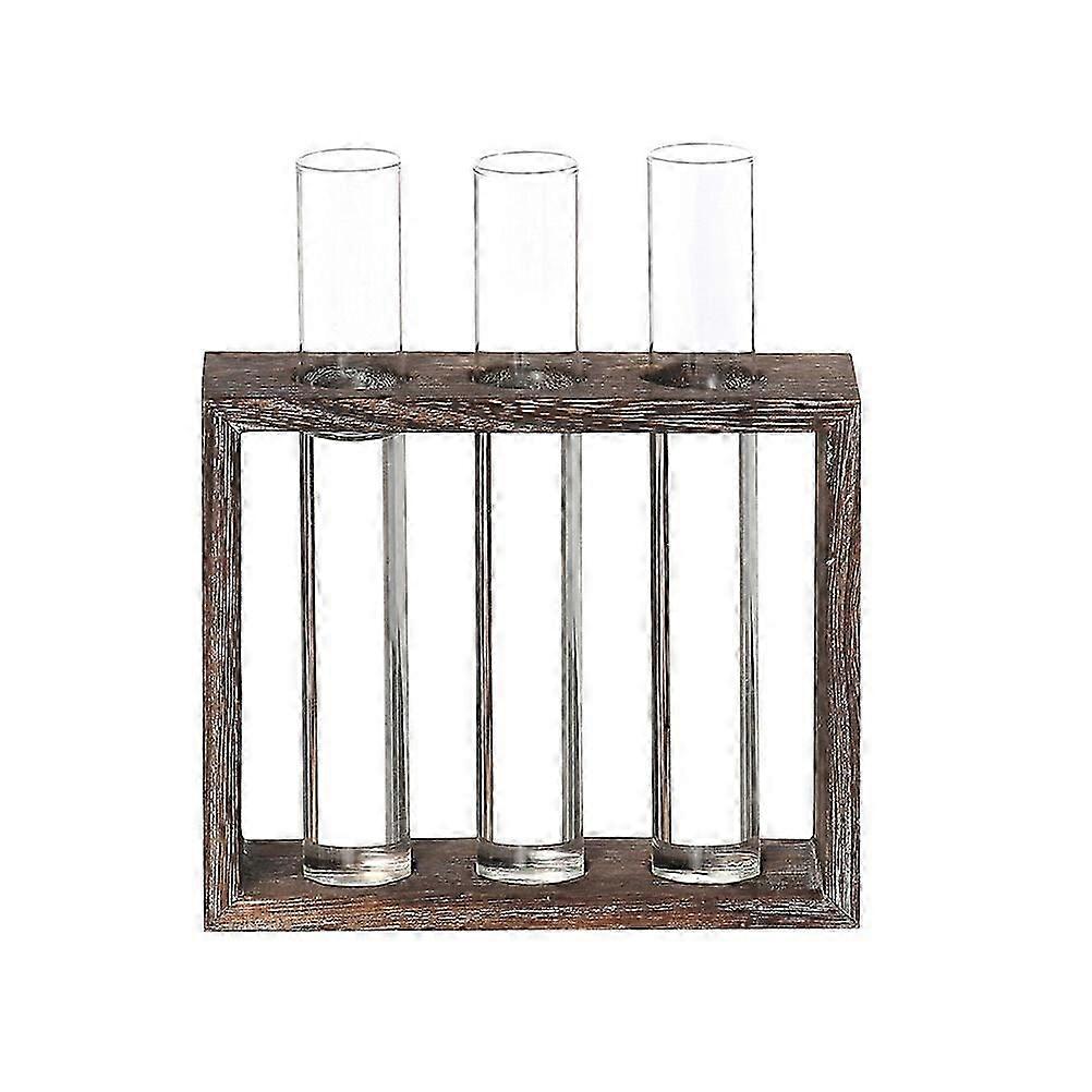 1PC Transparent Hydroponic Glass Tube Vase Hydroponic Glass Tube Vase Decoration Creative Flower Arranging Container Antique Wooden Frame Test Tube Va
