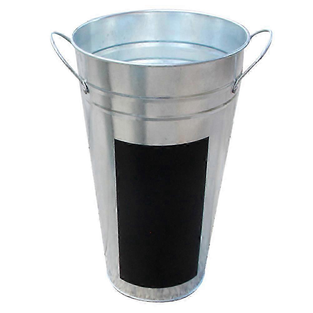 1Pc Iron Sheet Flower Bucket with Waterproof Blackboard Sticker Hydroponics Flower Container Garden Planter Display Flower Tub for Flower Shop