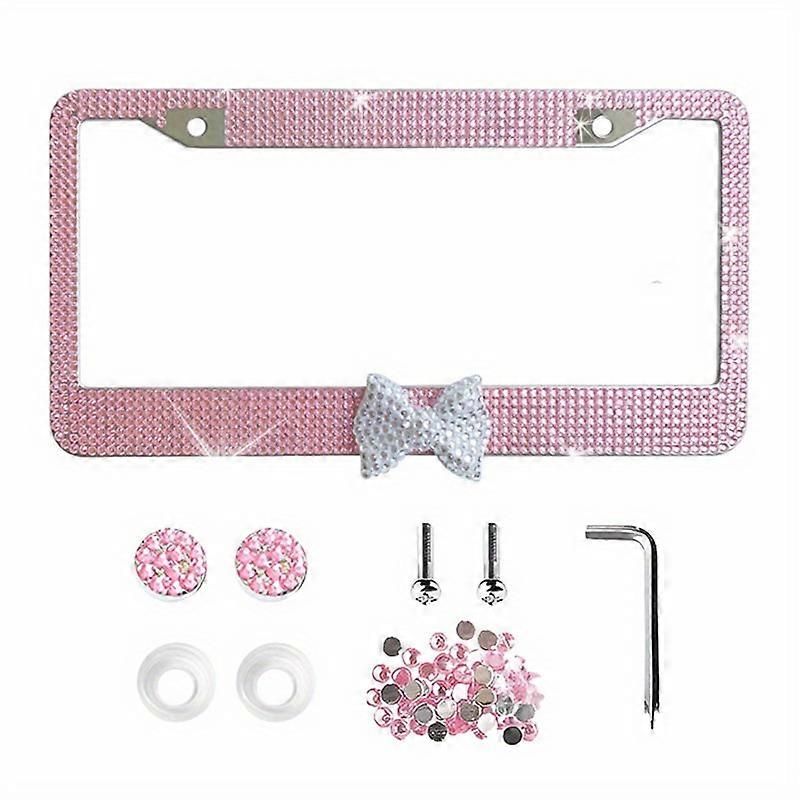 1pc Pink Shiny License Plate Frame, Cute Bow Tie Decoration, Shiny Car License Plate Frame With Stainless Steel Material Acrylic Rhinestones