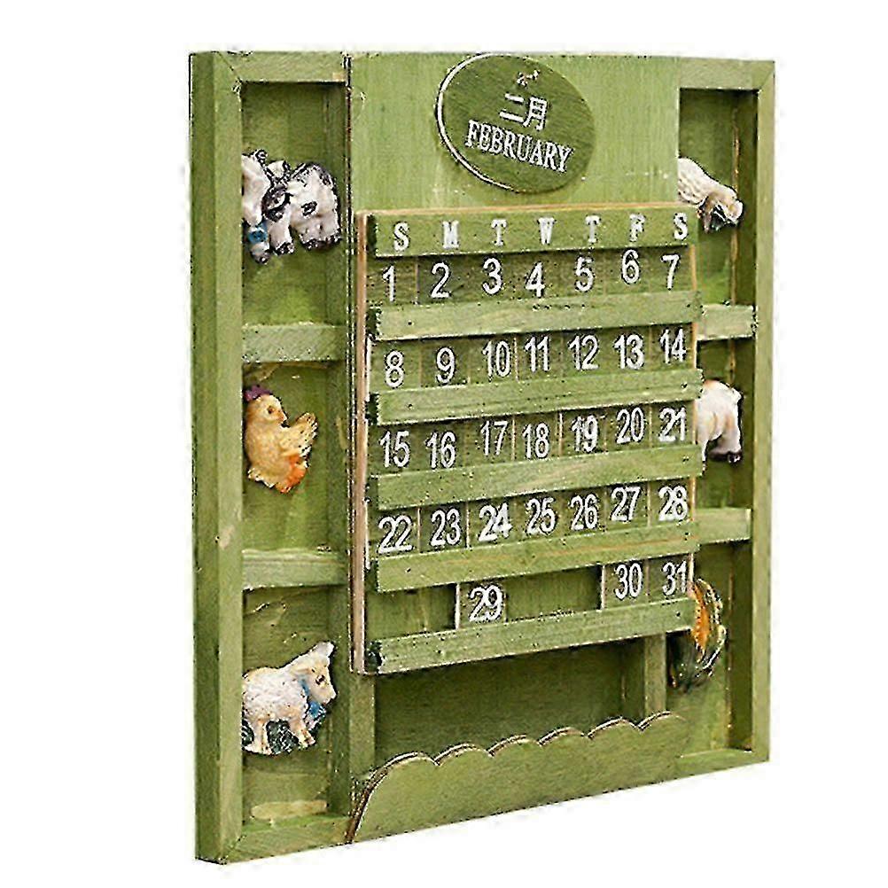 1Pc Manual Calendar Square Wooden Calendar Hanging Xmas Wooden Decor (Green)