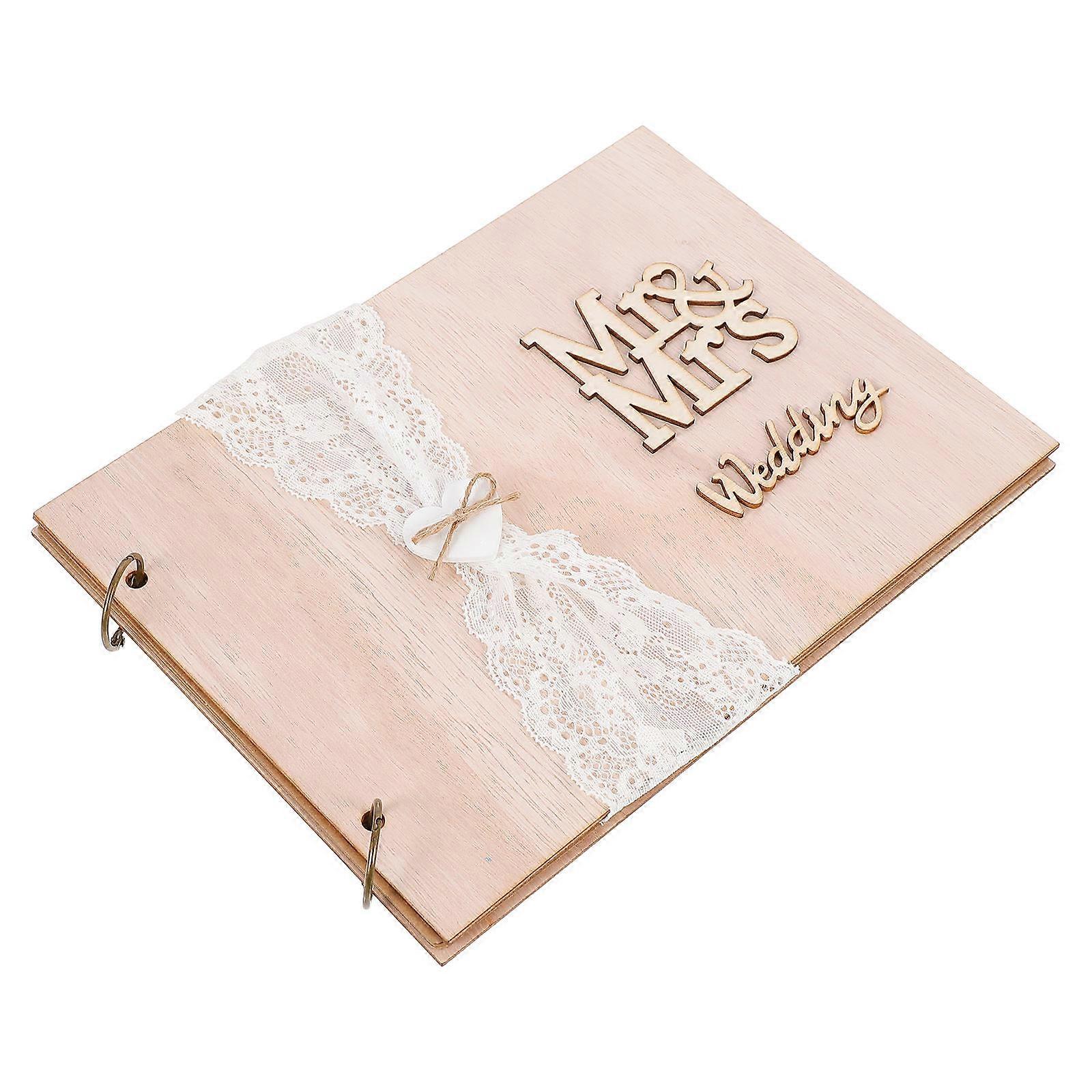 1Pc 10 Pages Retro Wooden Guest Book DIY Guest Sign in Book Message Book Guestbook Gift for Engagement Wedding Ceremony