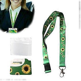 1pcs Neck Strap Sunflower Lanyard With Safety Breakaway + Plastic Id Badge Holder