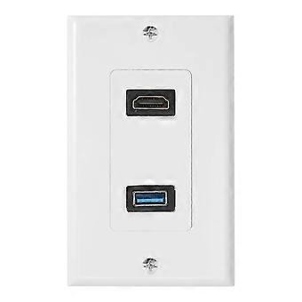 1x 2Port +USB 3.0 Female Wall Face Plate Panel Outlet Socket Extender White