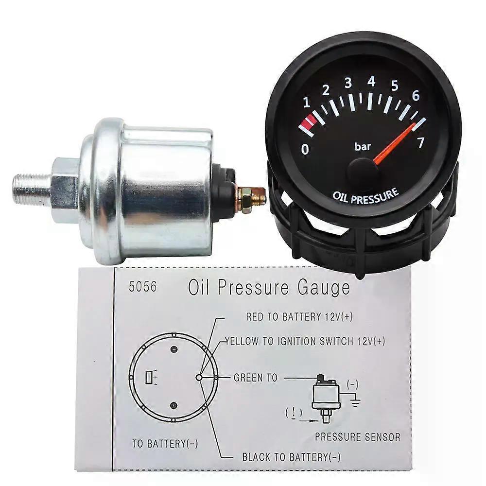 2" 52mm 12V Universal Auto Car Oil Pressure Gauge 0-7Bar Oil Press Gauge LED Meter with Sensor For 12V Racing Gauge Black Face