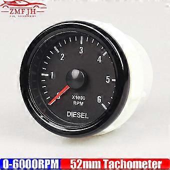 2" 52mm 0-6000 Rpm Tachometer White Backlight Tacho Meter Electrical Tachometer Gauge For 1-20 Cylinder Diesel Motor Engine 12v