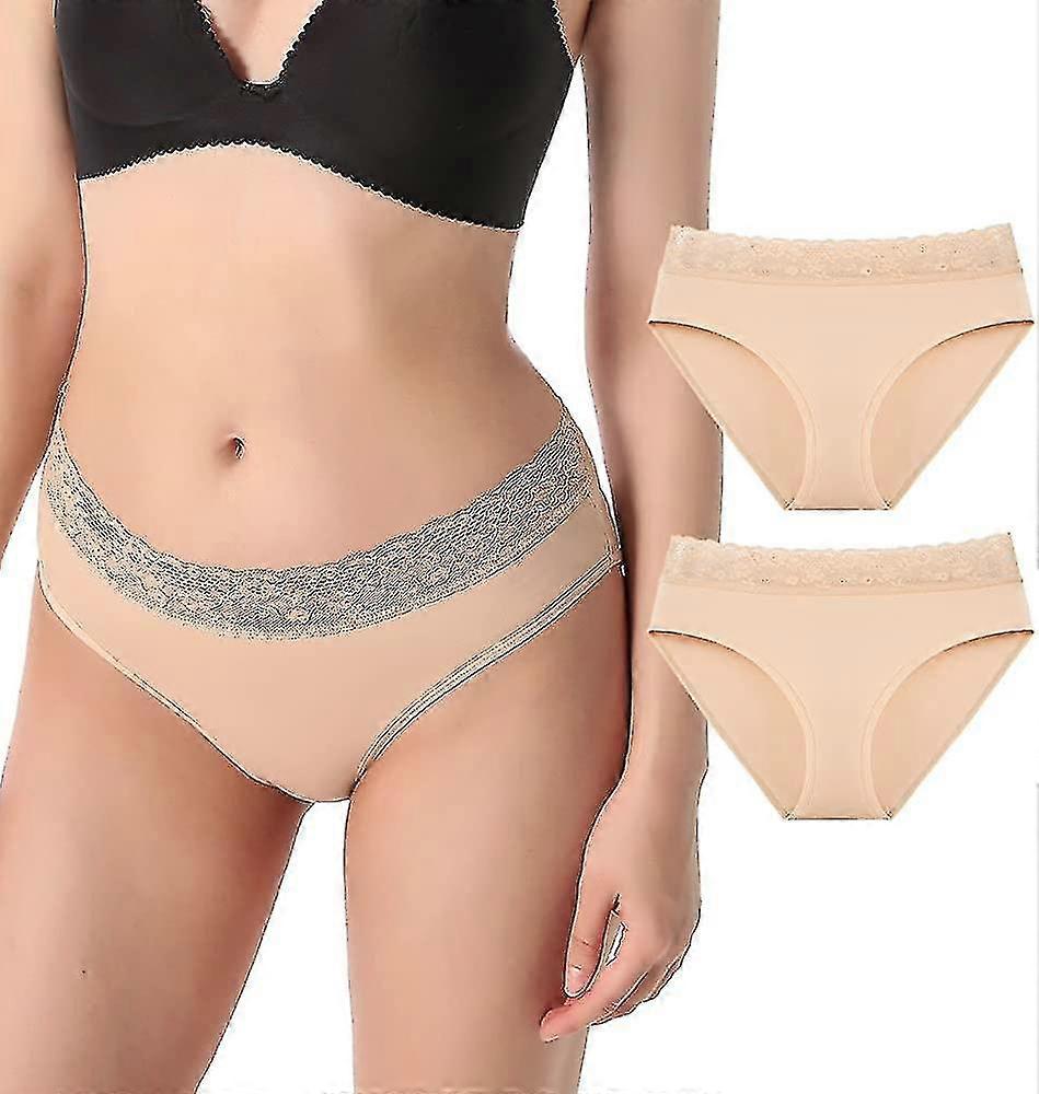 2pcs Cotton Underwear Women Lace Waistband Full Briefs Ladies High Leg Knickers Ladies Cotton Seamless Underwear