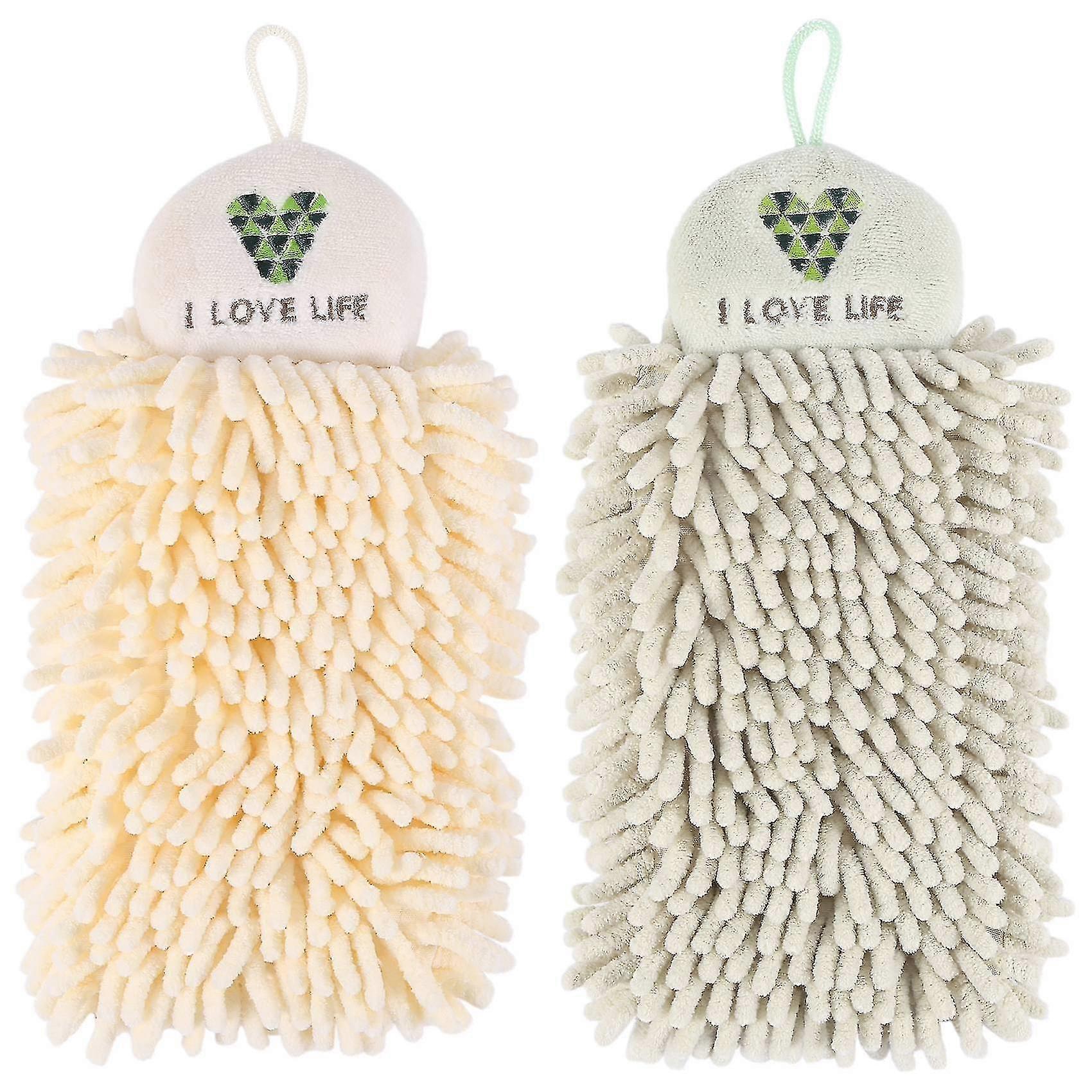 2pcs Kitchen Hanging Towels Set Chenille Hand Face Wipe Towels Bathroom Washcloths