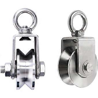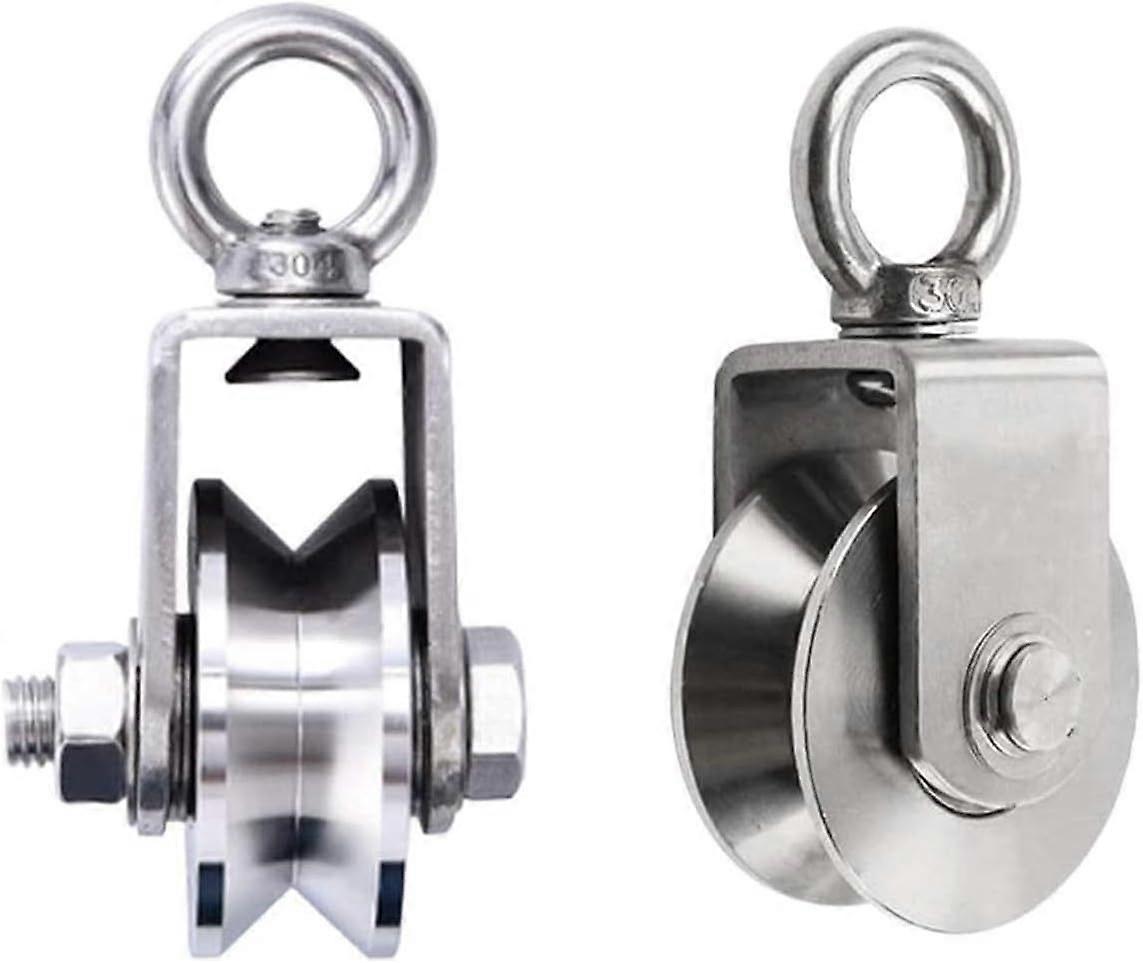 2Pcs Bloc De Poulie Simple, Rouleau De Poulie En Acier Inoxydable 304 Avec Crochet Pivotant Adapt Au Cble Mtallique Ou Au Cordon L'Intrieur Et L'Ext