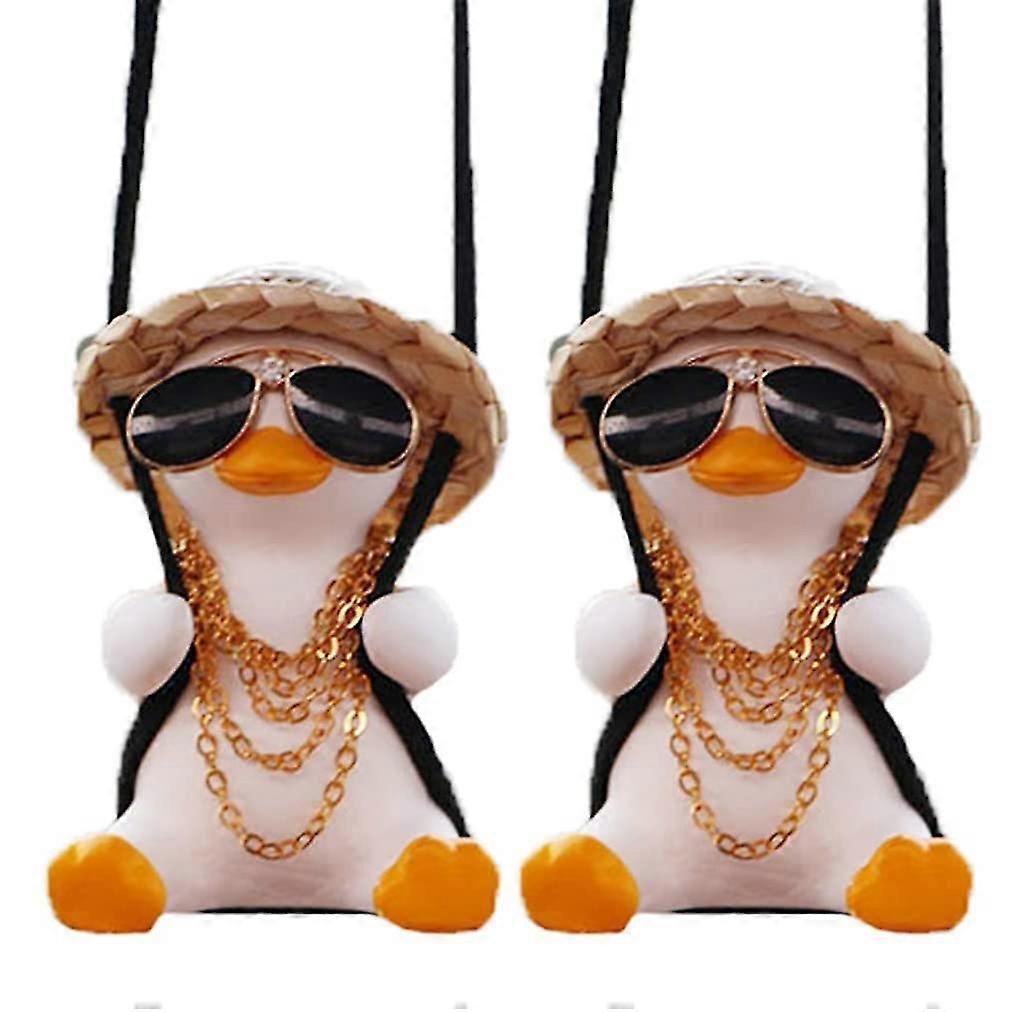 2pcs Swinging Duck Car Hanging Ornament Swing Duck Car Mirror Cute Anime Car Accessories Car Decora