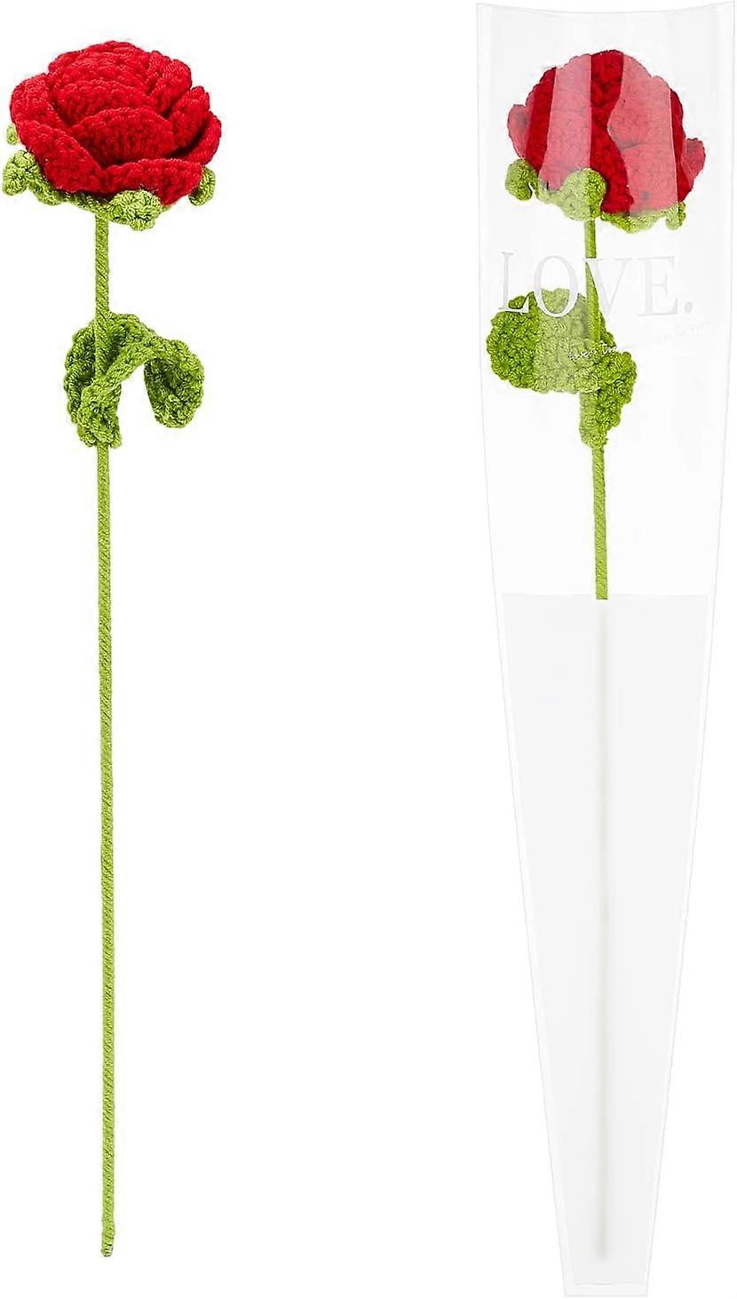 2pcs Handmade Knitted Rose Flower with Package Bag Artificial Knitted Flowers Crochet Rose Handmade Single Red Roses for Wife/Girlfriend/Lovers Birthd